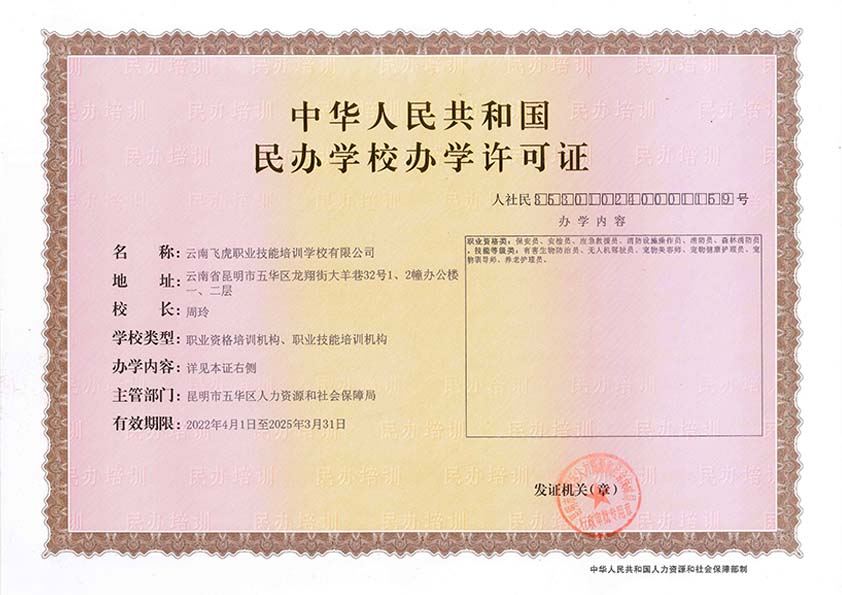 校長簡介周玲校長研究生學歷金融專業飛虎集團總經理飛虎職業技能培訓學校校長中國民航航空應急救援聯盟應急無人機專業委員會第一屆副主任云南省養犬服務協會常務副會長兼秘書長云南省民用無人機協會副會長云南省飛虎...